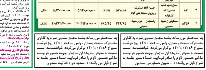 آگهی دعوت به مجمع صندوق سرمایه گذاری مشترک صنعت ومعدن مورخ 1401/02/18