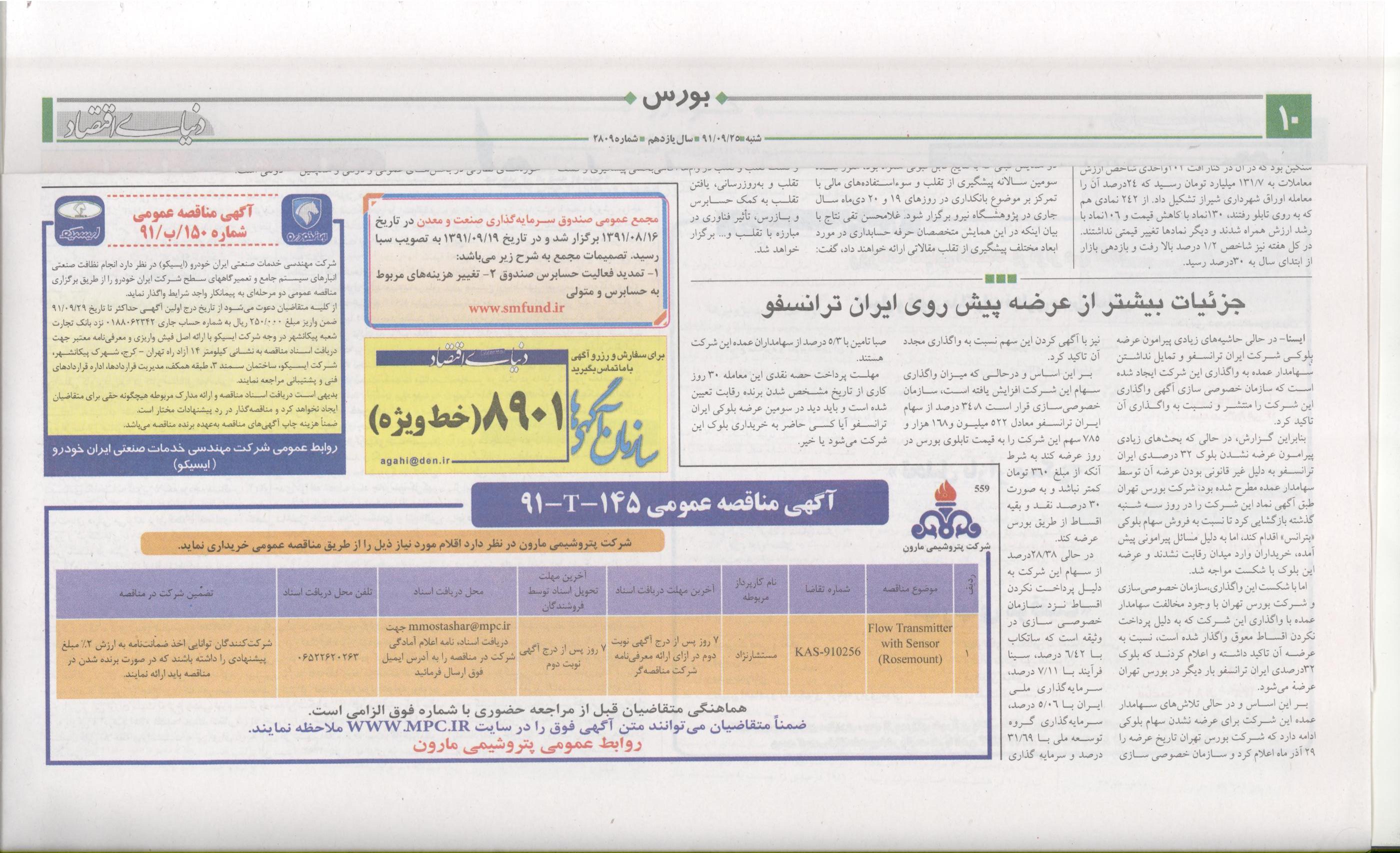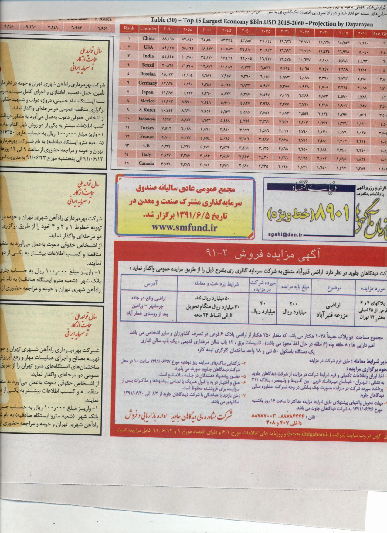 آگهی منتشر شده در خصوص برگزاری مجمع عمومی عادی سالانه صندوق مورخ 12/6/1391