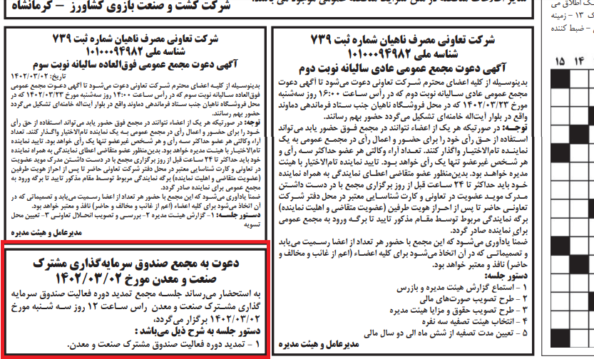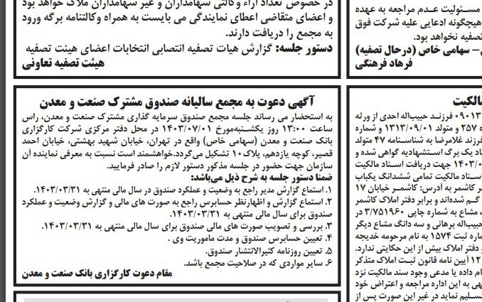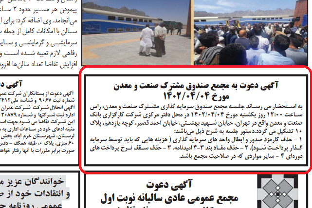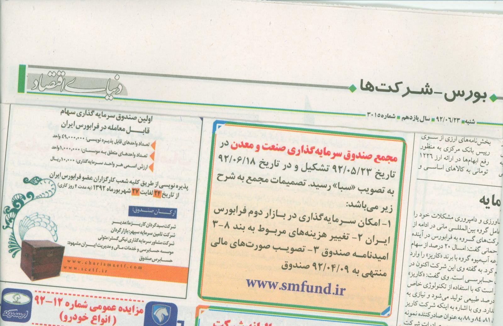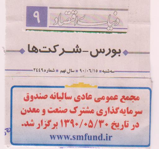روزنامه رسمی برگزاری مجمع سالیانه صندوق صنعت و معدن