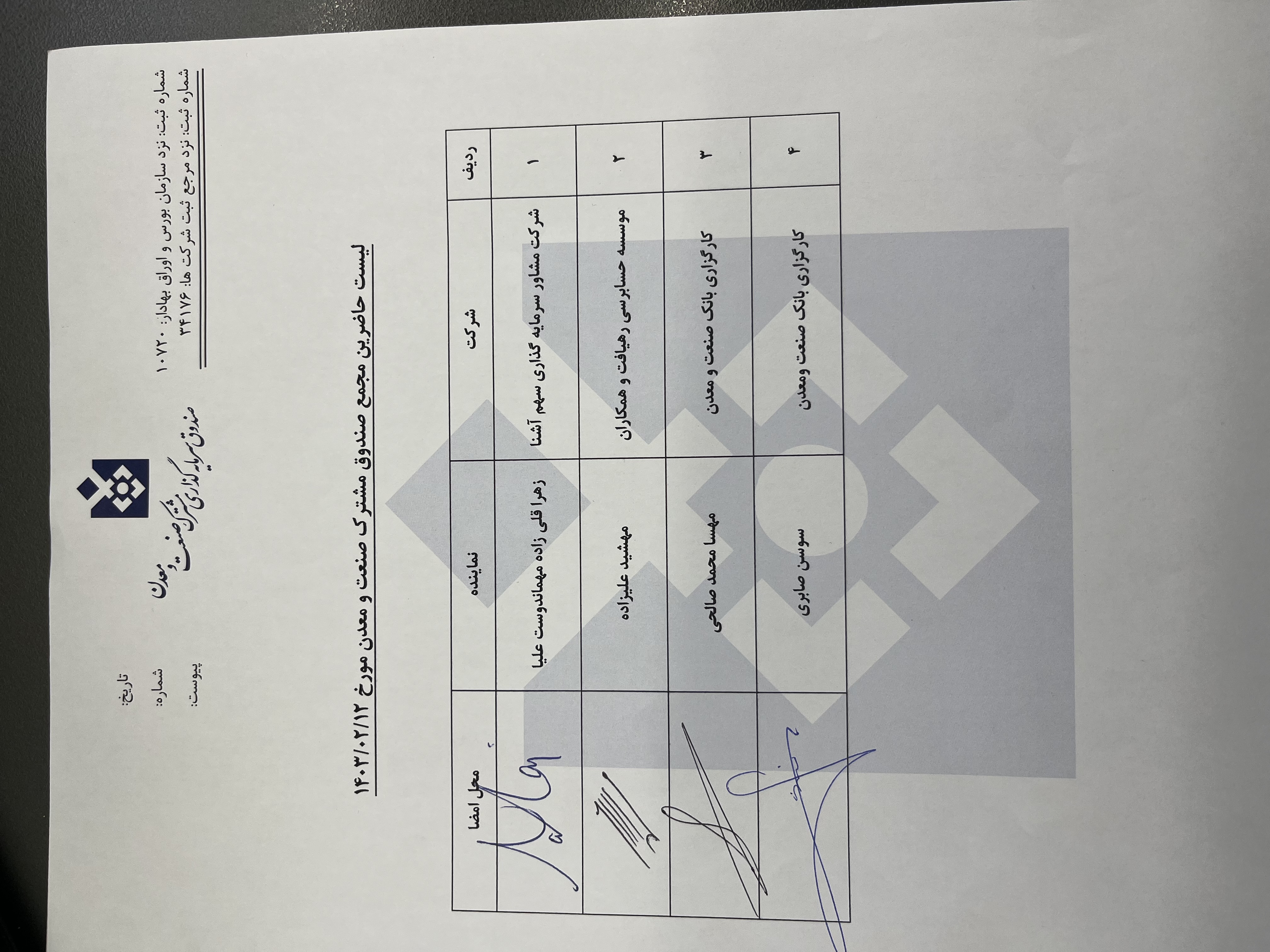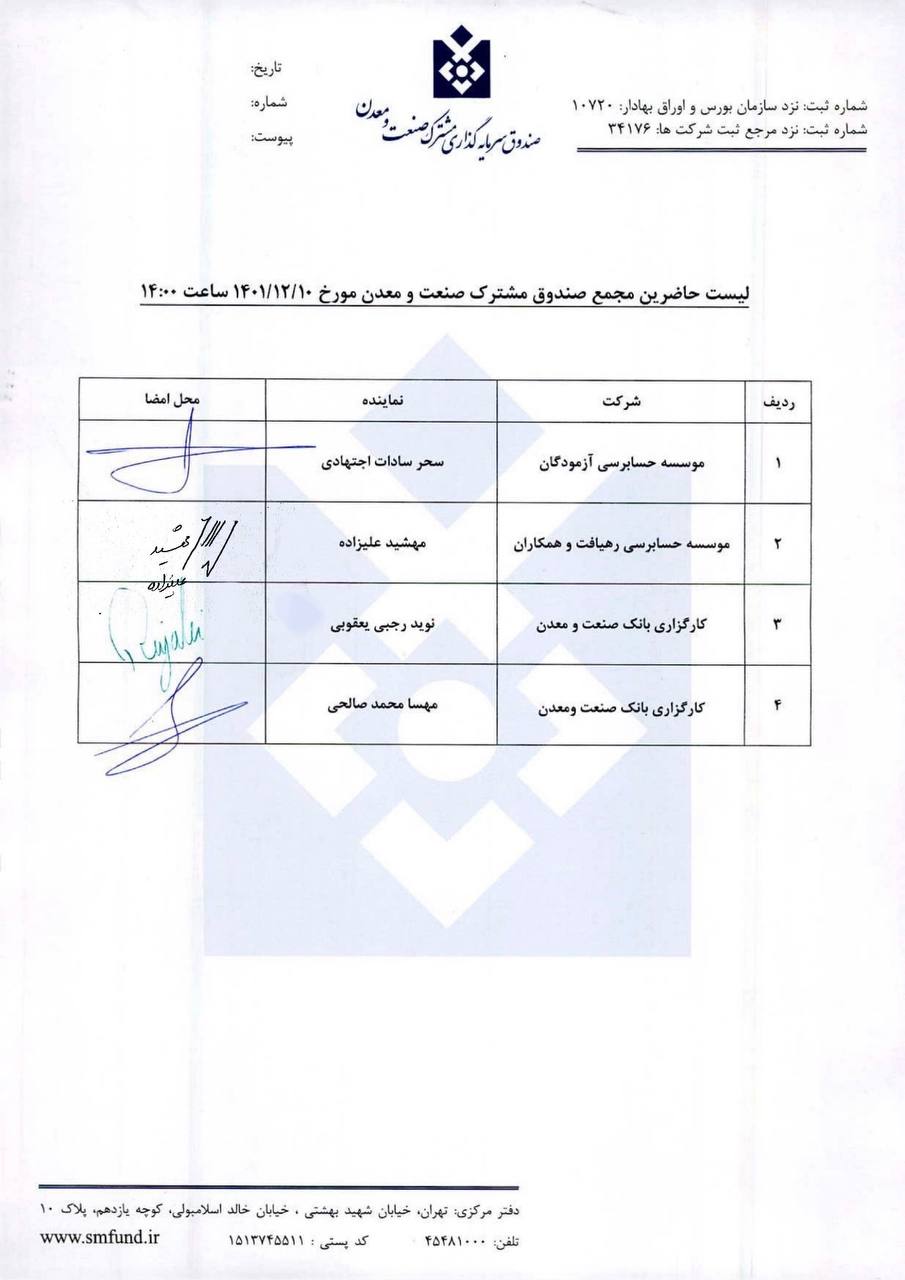 لبیست حاضرین مجمع صندوق مشترک صنعت و معدن مورخ ۱۴۰۳/۰۳/۰۱