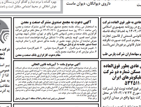 ثبت آگهی مجمع مورخ ۱۴۰۲/۰۴/۱۷